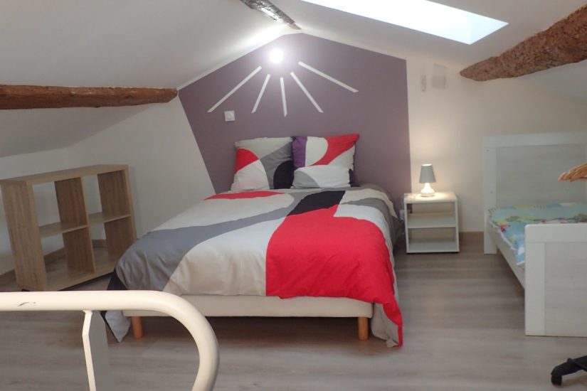 Gite de Beauregard: Le Tilleul Old renovated farm 5 min from Vienne, 3 min from Pont-Evêque, 32 min from Lyon, in the countryside. Capacity of 9/10 beds: equipped kitchen, living room/sofa, 2 independent bedrooms (double bed) upstairs with shower room, 1 bedroom on the mezzanine (1 double bed + 1 child's bed), 1 bedroom on the mezzanine ( 2 single beds), 1 play area for children, 1 bathroom with shower, 1 toilet. possibility to rent from 2 nights or weekly fitted sheet + pillowcase + duvet cover provided other sheets + towels optional (10€/person) non-smoking cottage without swimming pool, animals not accepted Possibility to rent the lodgings Le Tilleul and La Glycine communicating from the inside: sleeping capacity 17 to 19 peopleAccess to the cottages closed by an automatic gate