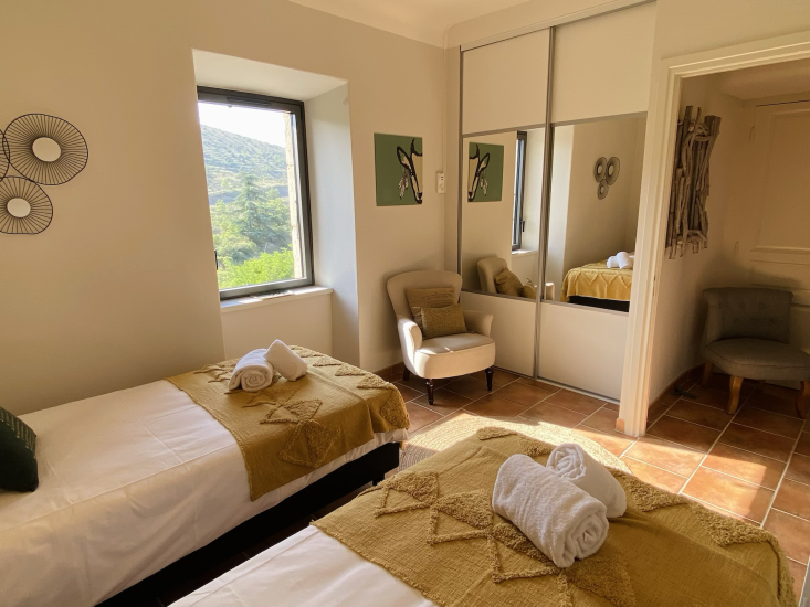 60 m² gîte in a fully renovated 19th-century Ardèche farmhouse built of local dry stone. An invitation to relax and cocoon in a setting combining comfort and authenticity. Set in a one-hectare natural estate with swimming pool.